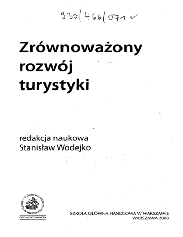 Zrównoważony rozwój turystyki redakcja naukowa Stanisław Wodejko SZKOŁA GŁÓWNA HANDLOWA W WARSZAWIE OFICYNA WYDAWNICZA WARSZAWA 2008 SPIS TREŚCI Wstęp 9 CZĘŚĆ I POJĘCIA I FUNKCJE ZRÓWNOWAŻONEGO ROZWOJU TURYSTYKI Jolanta Ćwiklińska Działania public relations w upowszechnianiu koncepcji turystyki zrównoważonej 13 Grzegorz Dobrzański Turystyka a środowisko przyrodnicze. Próba odwzorowania struktury zależności 31 Ewa Dziedzic Ekonomiczne aspekty zrównoważonego rozwoju turystyki \ 45 Beata Meyer Ład przestrzenny jako rezultat i determinanta rozwoju turystyki 59 Agata Niemczyk Turysta wobec koncepcji zrównoważonego rozwoju (wyniki badań ankietowych) 71 Agnieszka Niezgoda Turystyka zrównoważona - istota, zasady i krytyka koncepcji 83 Adam Pawlicz : Dobra publiczne i dobra klubowe na rynku turystycznym w aspekcie zrównoważonego rozwoju ; 95 Hanna Zawistowska „Agenda dla zrównoważonej i konkurencyjnej turystyki europejskiej" - rola Komisji Europejskiej w jej powstaniu i realizacji 107 CZĘŚĆ II ZRÓWNOWAŻONY ROZWÓJ TURYSTYKI NA SZCZEBLU REGIONALNYM I LOKALNYM Agata Basińska, Iwona Miedzińska' Działalność jednostek samorządu terytorialnego na rzecz zrównoważonego rozwoju turystyki na przykładzie wybranych gmin województwa wielkopolskiego 127 6 Spis treści Jadwiga Berbeka, Krzysztof Berbeka Instrumenty ograniczania antropopresji turystyki na region recepcyjny 141 Małgorzata Borkowska-Niszczota Główne kierunki zmian w zarządzaniu turystyką stymulujące zrównoważony rozwój obszarów recepcji turystycznej 153 Stefan Bosiacki, Bernadetta Hołderna-Mielcarek, Anna Szalczyk Koncepcja rozwoju turystyki zrównoważonej w ujęciu regionalnym 169 Janusz Majewski ^ ._ _Czy turystyka wiejska powinna być zrównoważona? 185 Małgorzata Gałązka Strefowanie jako metoda zarządzania turystyką zrównoważoną na obszarach kanadyjskich parków narodowych 199 Michał Jasiński Zrównoważony rozwój w monokulturowych gospodarkach turystycznych 209 Dawid Milewski Percepcja obszarów przyrodniczo cennych w aspekcie turystycznym na przykładzie województwa zachodniopomorskiego 227 Bogna Moszyńska Zrównoważony rozwój turystyki oraz ochrona krajobrazu kulturowego wokół obszarów chronionych na Mazowszu \ 239 Aleksander Panasiuk Koncepcja marketingu obszaru turystycznego w aspekcie zrównoważonego rozwoju ... 255 Joanna Przybyś Czy turystyka kulturowa może być „zrównoważona"? 267 Daniel Puciato Rola turystyki w realizacji koncepcji zrównoważonego rozwoju w gminie Głuchołazy ... 279 Adam Edward Szczepanowski Stymulowanie zrównoważonego rozwoju regionu poprzez wdrażanie markowych produktów turystycznych 291 Józef Sala Turystyka a ochrona przyrody w Ojcowskim Parku Narodowym 303 Karol Krajewski, Monika Świqtkowska Turystyka weekendowa na terenach chronionych Trójmiasta - szansa czy zagrożenie zrównoważonego rozwoju Kaszub? 315 Anna Wilkońska Ruch turystyczny w obiektach sakralnych - między sacrum aprofanum 327 Bernadetta Zawilińska Problemy zrównoważonego rozwoju turystyki w parkach krajobrazowych (na przykładzie parków krajobrazowych w Karpatach) 337 7 Spis treści CZĘŚĆ III ZRÓWNOWAŻONY ROZWÓJ TURYSTYKI A PRZEDSIĘBIORSTWA TURYSTYCZNE Hanna Górska-Warsewicz Strategie rozwoju przedsiębiorstw turystyki wiejskiej a koncepcja zrównoważonego rozwoju 353 Piotr Gryszel, Dana E. Jaremen, Andrzej Rapacz Zasady zrównoważonego rozwoju w praktyce funkcjpnowajiia obiektów hotelarskich ... 365 Małgorzata Januszewska Przewaga konkurencyjna uzdrowisk a zrównoważony ich rozwój 387 Magdalena Kachniewska Odpowiedzialność przedsiębiorstwa w obszarze społecznym jako czynnik trwałego rozwoju produktu turystycznego 399 Anna Konieczna-Domańska Działania wielkich światowych koncernów podróży na rzecz zrównoważonego rozwoju na przykładzie TUI 415 Elżbieta Nawrocka Kształtowanie wizerunku obszaru recepcji turystycznej w świetle idei społecznej odpowiedzialności biznesu 425 Teresa Skalska Społeczna odpowiedzialność przedsiębiorstw w turystyce: przegląd koncepcji 439