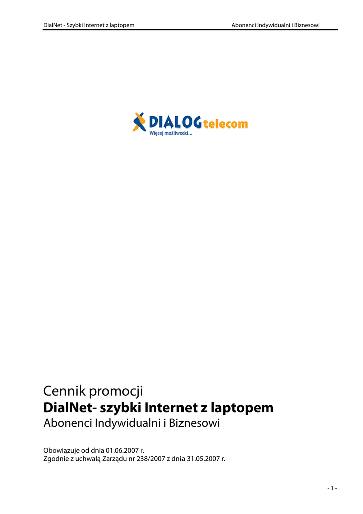 cennik promocji DialNet - Szybki Internet z laptopem