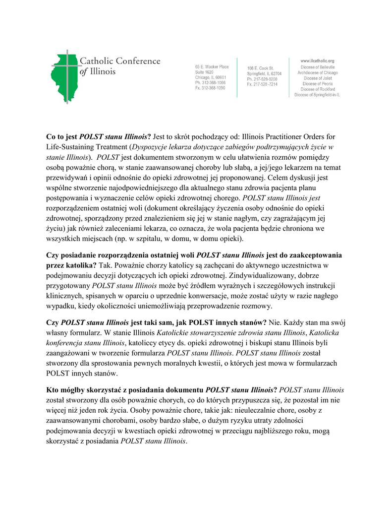 Co to jest POLST stanu Illinois? - Catholic Conference of Illinois