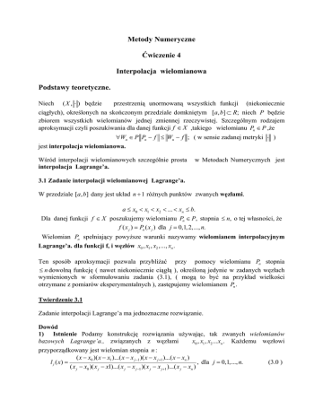 Pn będzie wielomianem interpolacyjnym Lagrange’a dla funkcji f :[a, b] → R, o