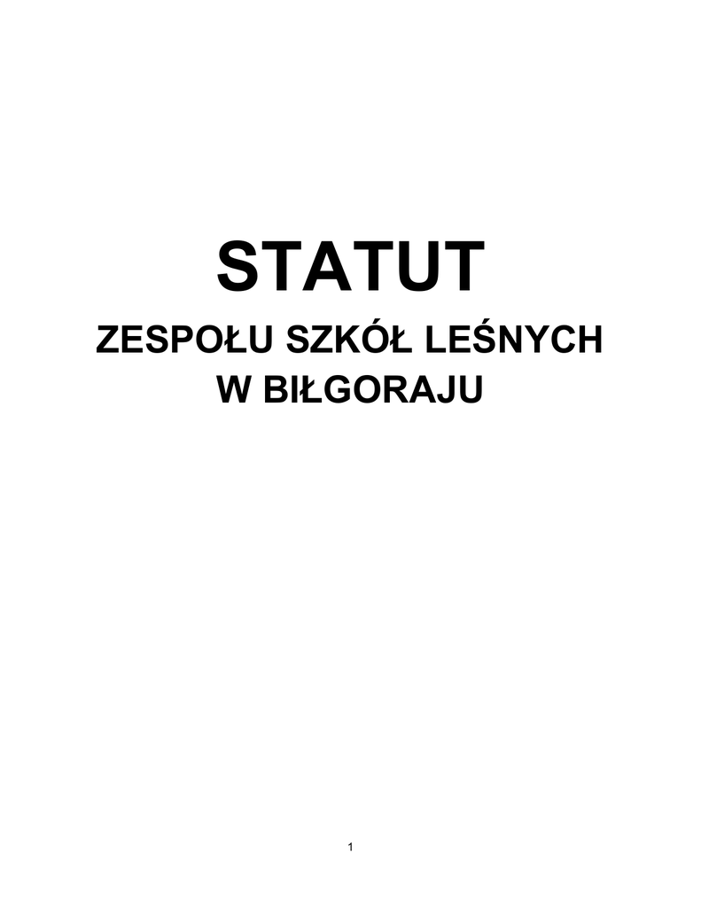 STATUT ZESPOŁU SZKÓŁ LEŚNYCH W BIŁGORAJU 1 Nazwa Zespołu § 1. 1. Podstawą działalności Zespołu Szkół Leśnych w Biłgoraju jest akt założycielski: a. Decyzja Nr 6 Kuratora Oświaty i Wychowania z dnia 1.VI.1978r. w sprawie utworzenia Zbiorczego Zakładu Szkolnego o nazwie „Zespół Szkół Zawodowych Ministerstwa Leśnictwa i Przemysłu Drzewnego w Biłgoraju; b. Akt przekształcenia zbiorczego zakładu szkolnego pod nazwą Zespół Szkół Zawodowych Ministerstwa Leśnictwa i Przemysłu Drzewnego w Biłgoraju z dnia 27 stycznia 1987r. na nazwę w brzmieniu: „Zespół Szkół Leśnych w Biłgoraju”. 2. Siedzibą Zespołu Szkół Leśnych w Biłgoraju jest Biłgoraj, ul .Polna 3. § 2. W skład Zespołu Szkół Leśnych w Biłgoraju, zwanego dalej „Zespołem”, wchodzą szkoły ponadgimnazjalne: a. Technikum Leśne im. Polskiego Towarzystwa Leśnego w Biłgoraju kształcące w zawodzie: technik leśnik, b. Zasadnicza Szkoła Leśna w Biłgoraju, kształcąca w zawodzie: operator maszyn leśnych. § 3. 1. Organem prowadzącym Zespół jest Minister Środowiska, który sprawuje nadzór nad działalnością Zespołu w zakresie spraw finansowych i administracyjnych. 2. Nadzorowi podlega w szczególności: a. prawidłowość dysponowania przyznanymi Zespołowi środkami finansowymi oraz gospodarowanie mieniem, b. przestrzeganie obowiązujących przepisów dotyczących bezpieczeństwa i higieny pracy pracowników i uczniów, c. przestrzeganie przepisów dotyczących organizacji pracy Zespołu. § 4. Organem sprawującym nadzór pedagogiczny jest Minister Środowiska. § 5. Ilekroć w niniejszym Statucie mowa jest o „ustawie”, należy przez to rozumieć ustawę z dnia 7 września 1991 r. o systemie oświaty (Dz. U. z 2004 r. Nr 256, poz. 2572, z późn. zm.). Cele i zadania Zespołu § 6. 1. Zespół stanowi jednostkę organizacyjną, w ramach której funkcjonują ponadgimnazjalne szkoły leśne. 2. Zespół realizuje cele i zadania dydaktyczne, wychowawcze i opiekuńcze określone w ustawie, a w szczególności przygotowuje uczniów do wykonywania czynności zawodowych na najwyższym poziomie oraz zapewnia uczniom pełny i wszechstronny rozwój intelektualny, emocjonalny i fizyczny, zgodnie z potrzebami i możliwościami psychofizycznymi, w warunkach poszanowania godności osobistej. 3. Zespół wspomaga ucznia w jego wszechstronnym rozwoju i tworzy pozytywnie oddziałujące środowisko wychowawcze poprzez rozwój osobowości z uwzględnieniem ich indywidualnych uzdolnień i zainteresowań, między innymi poprzez: a. umożliwienie zdobycia wiedzy i umiejętności niezbędnych do zdania egzaminu maturalnego i podjęcia nauki na wyższych uczelniach, b. umożliwienie zdobycia wiedzy i umiejętności zawodowych niezbędnych do przystąpienia 2 do egzaminu potwierdzającego kwalifikacje, kształtowanie umiejętności świadomego wyboru przez absolwenta dalszego kształcenia i kształtowania własnej ścieżki zawodowej. 4. Cele i zadania, o których mowa w ust. 1 i 2, realizują nauczyciele wraz z uczniami w procesie dydaktycznym, działalności pozalekcyjnej i pozaszkolnej, a także w czasie zajęć praktycznych i praktyk zawodowych. 5. Szkoły Zespołu prowadzą pomoc psychologiczno-pedagogiczną dla uczniów o specyficznych potrzebach edukacyjnych zgodnie z odrębnymi przepisami. c. § 7. 1. Cele i zadania dydaktyczne realizowane są w oparciu o obowiązujące podstawy programowe, plany i programy nauczania dotyczące poszczególnych kierunków kształcenia. 2. Dopuszczone do użytku w danej szkole przez dyrektora szkoły programy nauczania, stanowią szkolny zestaw programów nauczania. Dyrektor szkoły jest odpowiedzialny za uwzględnienie w szkolnym zestawie programów nauczania całości podstawy programowej kształcenia ogólnego ustalonej dla danego etapu edukacyjnego. 3. Zespół do dnia 15 czerwca podaje do publicznej wiadomości zestaw podręczników, które będą obowiązywać w szkołach od początku następnego roku szkolnego. § 8. Zespół realizuje całokształt zadań uwzględniając obowiązujące przepisy bezpieczeństwa i higieny, spełniając jednocześnie następujące warunki: a. każda pracownia w Zespole posiada szczegółowy regulamin przepisów bezpieczeństwa i higieny oraz przeciwpożarowych, b. podczas zajęć obowiązkowych, nadobowiązkowych, pozaszkolnych i pozalekcyjnych opiekę nad uczniami sprawuje nauczyciel lub opiekun wyznaczony przez dyrektora szkoły, c. podczas realizacji praktycznej nauki zawodu, opieka nad uczniami jest sprawowana przez nauczyciela praktycznej nauki zawodu lub kierownika praktyk wyznaczonego przez Nadleśniczego Nadleśnictwa Biłgoraj, d. obiekty szkolne i teren przyszkolny są objęte monitoringiem wizyjnym. Organy Zespołu § 9. Organami Zespołu są: a. Dyrektor, b. Rada Pedagogiczna, c. Samorząd Uczniowski, d. Rada Rodziców. § 10. 1. Dyrektor Zespołu w szczególności: a. kieruje działalnością Zespołu, b. reprezentuje Zespół na zewnątrz, c. sprawuje nadzór pedagogiczny, d. sprawuje opiekę nad uczniami oraz stwarza warunki harmonijnego rozwoju psychofizycznego poprzez działania prozdrowotne, e. realizuje uchwały Rady Pedagogicznej, podjęte w ramach jej kompetencji stanowiących, f. dysponuje środkami określonymi w planie finansowym Zespołu zaopiniowanym przez Radę Pedagogiczną i ponosi odpowiedzialność za ich prawidłowe wykorzystanie, a także organizuje administracyjną, finansową i gospodarczą obsługę Zespołu, 3 2. 3. 4. 5. 6. 1. 2. 3. 4. 5. 6. 7. 8. 9. 10. 11. g. wykonuje inne zadania wynikające z przepisów szczególnych, h. współdziała ze szkołami wyższymi oraz jednostkami organizacyjnymi Ministra Środowiska w celu właściwej organizacji kształcenia praktycznego oraz wspomagania rozwoju uczniów, i. odpowiada za właściwą organizację i przebieg egzaminów zewnętrznych przeprowadzanych w szkołach, j. stwarza warunki do działania w Zespole: wolontariuszy, st