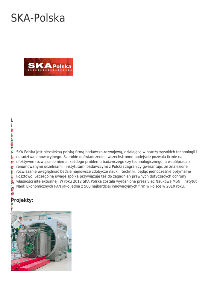 SKA-Polska L i h n tk t d :p o / s/ SKA Polska jest niezależną polską firmą badawczo-rozwojową, działającą w branży wysokich technologii i tw doradztwa innowacyjnego. Szerokie doświadczenie i wszechstronne podejście pozwala firmie na rw efektywne rozwiązanie niemal każdego problemu badawczego czy technologicznego, a współpraca z .w o renomowanymi uczelniami i instytutami badawczymi z Polski i zagranicy gwarantuje, że znalezione sn rozwiązanie uwzględniać będzie najnowsze zdobycze nauki i techniki, będąc jednocześnie optymalne k kosztowo. Szczególną uwagę spółka przywiązuje też do zagadnień prawnych dotyczących ochrony y a własności intelektualnej. W roku 2012 SKA Polska została wyróżniona przez Sieć Naukową MSN i instytut w - Nauk Ekonomicznych PAN jako jedna z 500 najbardziej innowacyjnych firm w Polsce w 2010 roku. w p w o l p Projekty: sa k r .a t p n l e r :a Wysokosprawn e węglanowe ogniwa paliwowe View more Strona CBI Pro-Akademia używa ciasteczek (cookies), dzięki którym nasz serwis może działać lepiej. Zobacz