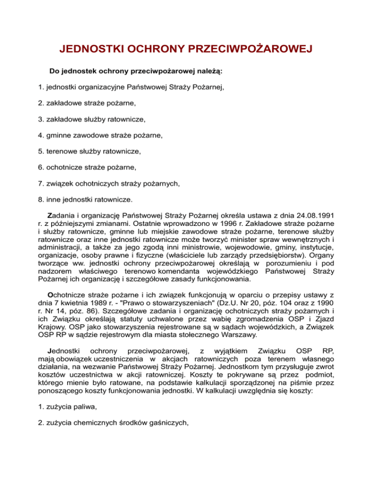 JEDNOSTKI OCHRONY PRZECIWPOŻAROWEJ