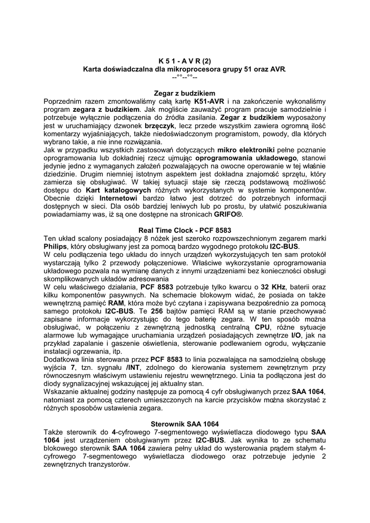 K 5 1 - A V R (2) Karta doświadczalna dla mikroprocesora grupy 51