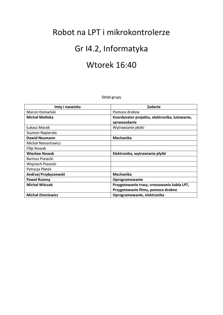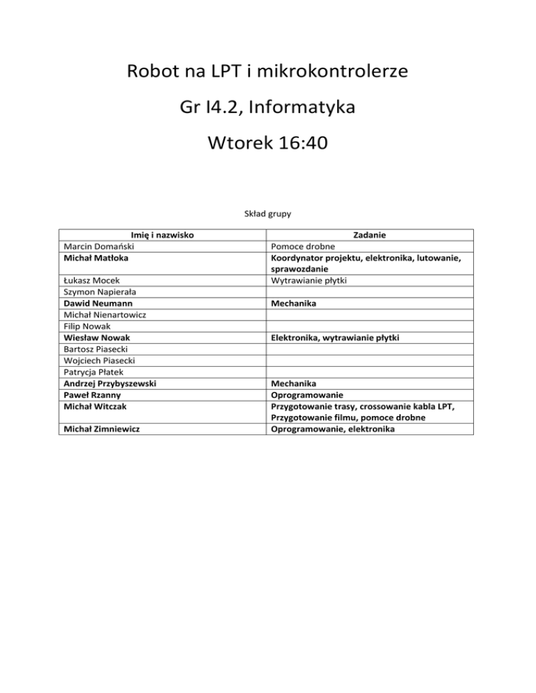 Robot na LPT i mikrokontrolerze Gr I4.2, Informatyka Wtorek 16:40