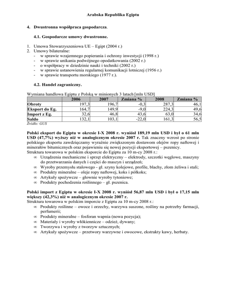 Arabska Republika Egiptu 4. Dwustronna współpraca gospodarcza
