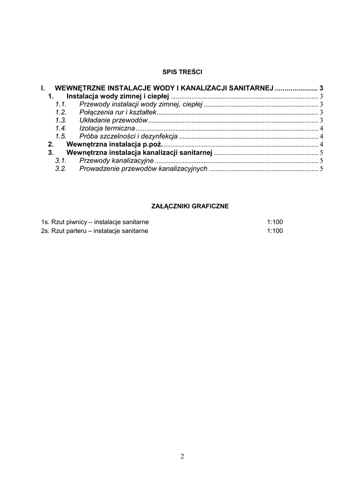 2 I. WEWNĘTRZNE INSTALACJE WODY I KANALIZACJI