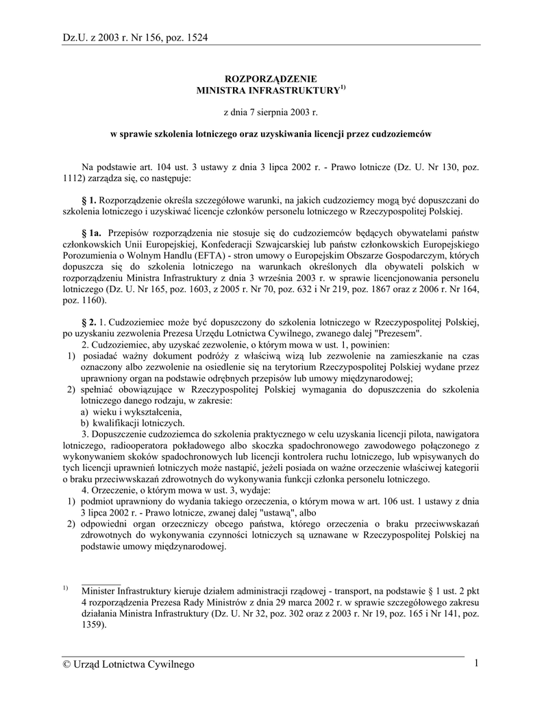 Dz.U. z 2003 r. Nr 156, poz. 1524 © Urząd Lotnictwa Cywilnego 1