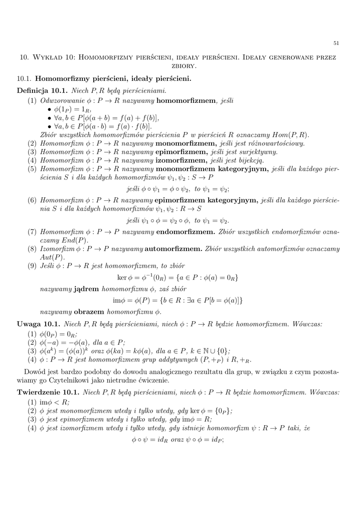 10.1. Homomorfizmy pierścieni, ideały pierścieni.