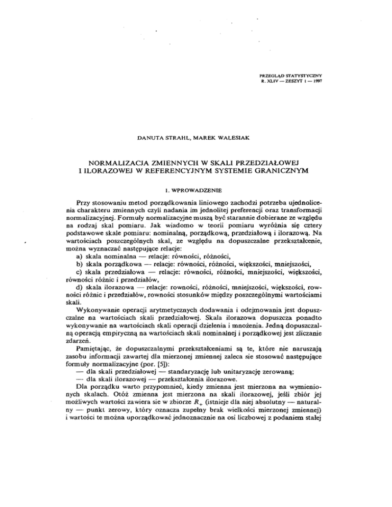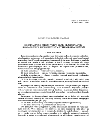 NORMALiZACJA ZMIENNYCH W SKALI PRZEDZIAŁOWEJ I ILORAZOWEJ W REFERENCYJNYM SYSTEMIE GRANICZNYM l. WPROWADZENIE