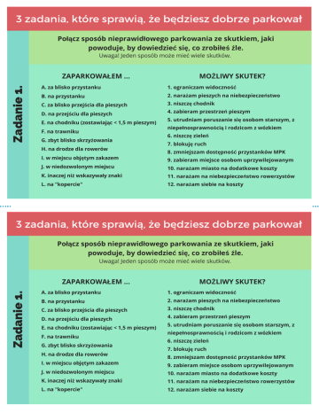 Zadanie 1. Połącz sposób nieprawidłowego parkowania, ze