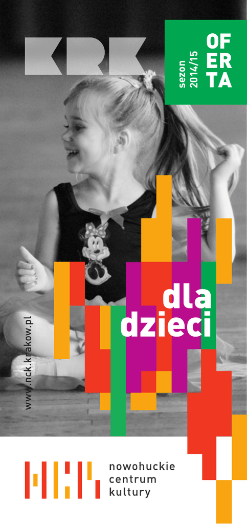 www.nck.krakow.pl sezon 2014/15 01 dla dzieci ZESPOŁY TANECZNE 03 Zespół Pieśni i Tańca NOWA HUTA informacje i zapisy: tel. 12 644 02 66 wew. 15 W swoim repertuarze posiada pieśni i tańce różnych regionów kraju. Poprzez taniec i śpiew, zespół rozwija u dzieci sprawność w specyficzny sposób, bogaty w twórcze działania i estetyczne doznania, wiążące proces rozwoju fizycznego z poznaniem kultury narodowej. Oryginalne tańce i pieśni poddane artystycznemu opracowaniu swoją treścią i wykonaniem propagują polski folklor regionalny i narodowy. Zespół uczestniczył w wielu znaczących festiwalach i konkursach zarówno w kraju jak i poza jego granicami. kierownik artystyczny: Anatol Kocyłowski instruktor grup dziecięcych: Anna Barańska przygotowanie wokalne: Andrzej Cebulak Dziecięcy Zespół Góralski MALI HAMERNICY informacje i zapisy: tel. 12 644 02 66 wew. 10 Członkami zespołu są dzieci i młodzież w wieku 5– 15 lat. W swoim bogatym repertuarze posiada pieśni i tańce prezentujące w autentycznej formie folklor Skalnego Podhala. W trakcie trzydziestu lat swojej działalności dał blisko sześćset koncertów w kraju i za granicą. instruktorzy: Anna i Kazimierz Lassakowie Grupa Baletowa ETIUDA informacje i zapisy: tel. 12 644 02 66 wew. 10 Grupa powstała w 2010r. Podczas zajęć młodzi tancerze ćwiczą technikę barre au sol, podstawy tańca klasycznego i jazzowego, rozwijają świadomość ciała, dynamikę ruchu i ekspresję. Zespół bierze udział w licznych konkursach choreograficznych, koncertach i festiwalach. instruktor: Katarzyna Stolarczyk 04 ZESPOŁY TANECZNE ZAJĘCIA TANECZNE 05 Zespół Tańca Nowoczesnego KLIPS TANECZNA AKADEMIA MALUCHA informacje i zapisy: tel. 12 644 02 66 wew. 10 Grupę tworzą dzieci i młodzież ze szkół podstawowych i gimnazjalnych. Układy choreograficzne zespołu oparte są na technice tańca nowoczesnego, z wykorzystaniem elementów disco, funky i hip-hop, do znanych utworów muzyki popularnej. Zespół tworzą dwie grupy uczestników: starsza – KLIPS oraz młodsza – KLIPSIK. Efekty pracy zespołu można oglądać podczas imprez organizowanych przez Nowohuckie Centrum Kultury. informacje i zapisy: tel. 12 644 02 66 wew. 10 Zajęcia taneczne dla przedszkolaków od 4 lat. Taniec towarzyski, disco, gry i zabawy rytmiczno-ruchowe, tańce zespołowe. Ćwiczenia poprawiają motorykę i sprawność fizyczną, aktywizują społecznie, usuwają stres. instruktor: Katarzyna Trynka-Ropa Amatorski Klub Tańca Towarzyskiego ENCEK informacje i zapisy: tel. 12 644 02 66 wew. 10 Podstawowym zadaniem Klubu jest popularyzacja tańca towarzyskiego oraz rozwijanie kultury tanecznej. Program obejmuje pięć tańców standardowych i pięć tańców latynoamerykańskich oraz elementy disco. Ponadto, pary tańczą krakowiaka, polkę i poloneza. Celem pracy w Klubie jest uczestnictwo w turniejach tańca towarzyskiego oraz pokazy taneczne dla publiczności. instruktor: Ada Wantuch MAŁY TEATR RUCHU nowość w NCK! informacje i zapisy: tel. 12 644 02 66 wew. 20 Mały Teatr Ruchu jest innowacyjną propozycją dla najmłodszych, stworzoną przez Krakowski Teatr Tańca. To projekt edukacyjny, który obejmuje rozwijanie umiejętności tanecznych i wyrazowych, związanych z ciałem i szeroko pojętym ruchem. Autorski program, opracowany przez zawodowych tancerzy i pedagogów, ukierunkowany będzie na działania artystyczne i docelowo doprowadzi do stworzenia repertuaru Teatru. Propozycja skierowana jest do dzieci w dwóch przedziałach wiekowych 5– 7 oraz 7–9 lat. instruktor: Anna Chmiel-Kowalska instruktor: Joanna Jania Balet dla dzieci informacje i zapisy: tel. 12 644 02 66 wew. 10 Zajęcia dla dzieci w wieku 8– 14 lat, uczestnicy poznają technikę tańca klasycznego, stanowiącą bazę taneczną umożliwiającą pracę w innych technikach. Balet wyrabia doskonałą dyscyplinę i koordynację ruchową, uczy harmonii i ładu w tańcu, kształtuje prawidłową postawę, wrażliwość i estetykę. instruktor: Natalia Kozłowska BALETOWA ZERÓWKA informacje i zapisy: tel. 12 644 02 66 wew. 10 Zajęcia przeznaczone dla dzieci w wieku 6–7 lat. W programie ćwiczenia modelujące i kształtujące prawidłową postawę ciała, ćwiczenia umuzykalniające, nauka podstawowych pozycji stóp i rąk, elementy pantomimy, zabawy muzyczne. instruktor: Katarzyna Stolarczyk Kursy tańca towarzyskiego informacje i zapisy: tel. 12 644 02 66 wew. 10 Zajęcia prowadzone są systemem wielostopniowym z możliwością doskonalenia umiejętności tanecznych na kolejnych etapach. Program kursów tańca towarzyskiego obejmuje tańce standardowe i latynoamerykańskie oraz elementy tańca disco. instruktorzy: Joanna Jania, Anna Gołda, Dorota Sadowska Break Dance informacje i zapisy: tel. 12 644 02 66 wew. 10 Break dance jest tańcem z dużą ilością elementów siłowo-sprawnościowych oraz kroków wykonywanych w „parterze”, czyli rękami i nogami, a często całym ciałem, na ziemi. Zajęcia składają się z półgodzinnej rozgrzewki i rozciągania metodą stretching. Kolejno następuje prezentacja, opis sposób wykonywania poszczególnego elementu. Na końcu indywidualne ćwiczenie danej figury pod okiem instruktora. Zajęcia są przeznaczone zarówno dla chłopców, jak i dziewczynek. instruktor: Dawid Dec 06 ZAJĘCIA TANECZNE ZAJĘCIA MUZYCZNE Disco MUZYCZNY KLUB PRZEDSZKOLAKA informacje i zapisy: tel. 12 644 02 66 wew. 10 informacje i zapisy: tel. 12 644 02 66 wew. 10 Zajęcia taneczne dla dzieci szkół podstawowych, obejmujące najnowsze trendy w tańcu nowoczesnym, zabawy muzyczno-ruchowe, elementy gimnastyki oraz dużo dobrej zabawy. 07 Hip-Hop Zajęcia dydaktyczne adresowane do dzieci w wieku 4–5 lat, które z różnych przyczyn nie chodzą do przedszkola. Dzięki uczestnictwu w Klubie dzieci nie tracą kontaktu z rówieśnikami, a odpowiednio dobrane zajęcia i ćwiczenia muzyczne, pantomimiczne, plastyczne, językowe, a także manualne