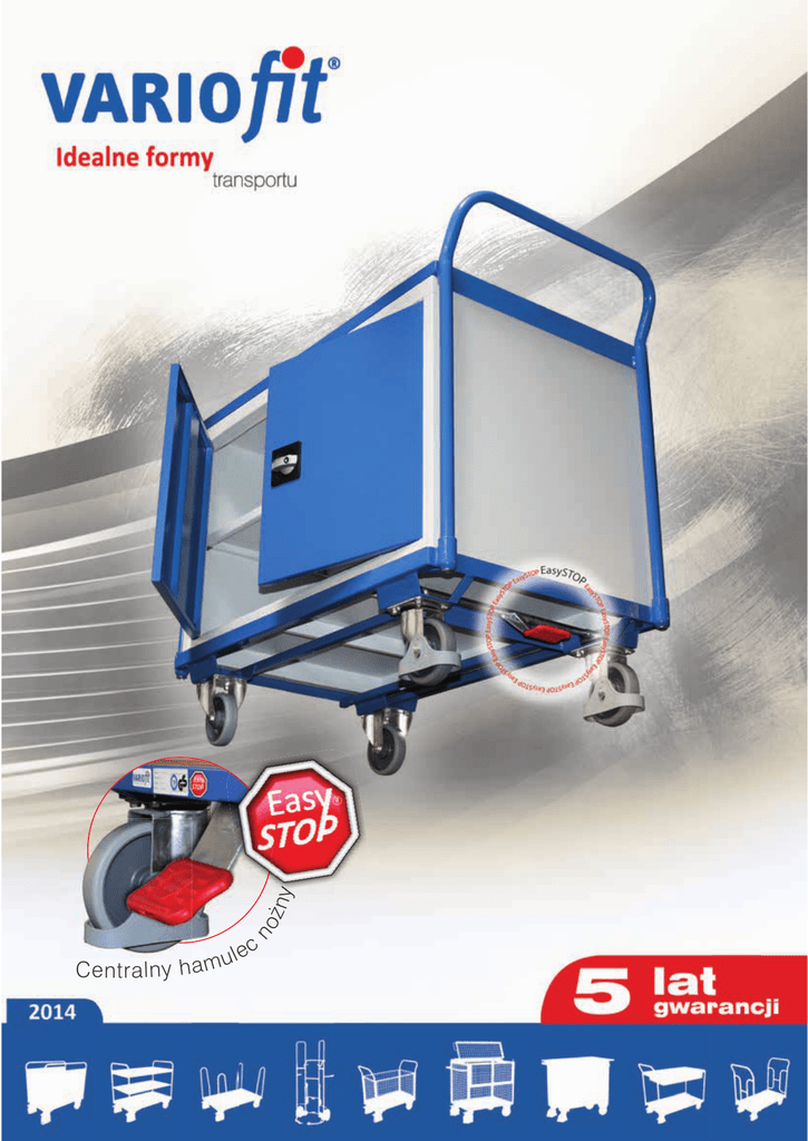 żny no Centralny le hamu c VARIOfit ® Nowości Wózek piętrowy ze składanymi półkami Wózek serwisowy Wózek do komisjonowania Strona 39 Strona 32 Wózek do akt Strona 39 Wózek do papieru Taczka do beczek Strona 40 Strona 88 Strona 40 Wózek do Wózek komunalny transportu beczek Stelaż do zbiórki surowców wtórnych Strona 92 Strona 88 koła pneumatyczne z profilem rowkowym, dla wszystkich taczek - lżejsze toczenie koła (o ponad 30%) - mniej śladów na powierzchni - niwelują hałas Strona 92 Spistreści Nasz wózek prezentacyjny dostępny w 4 wersjach językowych i z nowym wyposażeniem strona 12 Artykuły dodatkowe, wózek prezentacyjny 9 - 12 Wózki magazynowe, systemowe, wózki C+C, boks na wózki sklepowe, wózki do transportu ciężkiego, wózki skrzyniowe, magazynowe z pałąkiem, wózki ESD, lekkie i ciężkie wózki stołowe, wózki do paczek, wózki piętrowe, półkowe, piętrowe z nachylanymi półkami, wózki do akt 13 - 42 Wózki warsztatowe, wózki stołowe z wanną 43 - 51 Taczki do płyt, wózki, stojaki do płyt, wózki do półwyrobów, wózki do kompletacji, wózki z ramionami nośnymi, wózki na EURO-skrzynki 52 - 60 Wózki na skrzynki, stojaki materiałowe, wózek do transportu stołów, wózki z uchwytem 61 - 65 Wózki systemowe, wózki do długich materiałów 66 - 67 Taczki do opon, regały, wózki do opon, taczki stalowe, taczki aluminiowe, taczki ze składaną łopatą, taczka do krzeseł, taczka do mebli, taczki do transportu po schodach, taczki sprzętowe, taczki do butli stalowych, taczki do paczek, taczka do gazet 68 - 85 Taczki do beczek, wózki do beczek, wózki przechylne do beczek, wanny spustowe, kontener przechylny 86 - 93 Wózki ręczne, przyczepy rowerowe, przyczepy przemysłowe, wózki podnośnikowe, dźwignie, nadstawki pod paletę 94 - 103 Nadstawki paletowe 104 - 112 Jokery meblowe, stelaż do jokerów meblowych, trójkątne jokery meblowe, joker meblowy EUROPA 113 - 115 Platforma przejazdowa, platforma wjazdowa 116 - 117 systemy magazynowania Za każdą marką stoi silny producent Dzięki doświadczeniu i elastyczności producenta wyrobów VARIOfit® czerpiecie Państwo same korzyści. Dzięki nowocześnie wyposażonemu magazynowi mieszczącemu ponad 4000 miejsc paletowych oraz dzięki sprawnemu łańcuchowi logistycznemu mogą być Państwo pewni, że Wasze nawet wielkoseryjne zamówienie zostanie zrealizowane. Każdego dnia tworzymy nowe jak również udoskonalamy wcześniejsze rozwiązania dla klientów. Produkujemy wyroby na specjalne zamówienie. Dysponujemy odpowiednimi możliwościami konstrukcyjnymi i produkcyjnymi oraz zatrudniamy kadrę specjalistów z najwyższymi kwalifikacjami. Służymy fachowym doradztwem specjalistycznym placówkom handlowym oraz ich klientom. Za VARIOfit®, specjalistyczną marką handlową firmy CORDES, kryje się ponad 40 lat doświadczenia producenckiego. VARIOfit® - oryginalne wyroby z logo VARIOfit® .eu Oznacza to, że CORDES jest synonimem najwyższej jakości oraz szybkiej i niezawodnej dostawy dzięki racjonalnej sieci logistycznej. dobrych argumentów przemawiających za VARIOfit ® Łańcuch logistyczny Dzięki efektywnemu łańcuchowi logistycznemu firma CORDES dostarcza swe produkty odbiorcom zawsze na czas. Każdy produkt jest gotowy do transportu w ciągu 5 dni od daty złożenia zamówienia. Klienci mogą nam zaufać. Budowa modułowa Cztery podstawowe platformy bazowe w różnych rozmiarach stanowią podstawę prawie wszystkich rodzajów wózków, które są monSYSTEM towane przy pomocy stabilnych połączeń śruSKRZYNIOWY bowych. W ten sposób wyroby VARIOfit® z tym znakiem mogą zostać dopasowane również do zmieniających się wymagań. Dzięki takiemu rozwiązaniu produkty Variofit są zawsze atrakcyjne cenowo i nie tracą na swojej wartości. Produkty specjalne VARIOfit® jest marką niezwykle różnorodnych urządzeń transportowych. Dzięki szerokiej gamie produktów, VARIOfit® proponuje swoim klientom realizację wszelkich indywidualnych zamówień i projektów. Mobilny serwis Chcieliby Państwo naprawić lub przerobić swój produkt VARIOfit®? Na życzenie stawimy się z naszym mobilnym, kompetentnym zespołem montażowym i postaramy się je naprawić. Oczywiście uprawnienia z tytułu gwarancji zostaną przy tym zachowane. Lekkobieżne koła z hamulcem i systemem ochrony stóp Nowe koła z bieżnikiem z szarej gumy termoplastycznej w wyrobach VARIOfit® nie pozostawiają żadnych śladów nawet na jasnych powierzchniach. Uszczelnione, precyzyjne łożyska kulkowe są nie tylko wytrzymałe i odporne na zabrudzenia, lecz również wyjątkowo lekkobieżne. Koła są wyposażone w hamulec i system ochrony stóp zgodnie z normą UE. Ramy z L - profilu Tylko wózki VARIOfit® skonstruowane są na bazie ram wykonanych z unikalnego, innowacyjnego L-profilu zaprojektowanego przez firmę Cordes, który gwarantuje ich wytrzymałość. Dzięki tym ramom o wyjątkowej konstrukcji wózki VARIOfit® są bardzo trwałe, stabilne i lekkie. Malowanie proszkowe Po dokładnym przygotowaniu produkty VARIOfit® są malowane proszkowo. Dzięki temu uzyskują optymalne zabezpieczenie powierzchni. Cechują się wysoką odpornością oraz efektownym wyglądem przez bardzo długi czas, przez to mogą Państwu służyć przez wiele lat. Symbol „TÜV” Symbol Stowarzyszenia Nadzoru Technicznego „TÜV” jest znakiem jakości i bezpieczeństwa. Większość produktów VARIOfit® posiada ten znak. Otrzymują go urządzenia transportowe do maks. 500 kg nośności oraz wszystkie wózki/taczki transportowe do maks. 250 kg nośności. Bieżnik koła: szara guma termoplastyczna Ochrona przed włóknami: ograniczona do minimum możliwość wkręcania się włókien Długi okres użytkowania: uszczelnione, precyzyjne łożysko kulkowe Osłona: montowana seryjnie Lekkobieżne koła: o ok. 50% mniejszy opór przy wprowadzaniu wózka w ruch Długodystansowce, każdą drogę pokonają z lekkością Ko