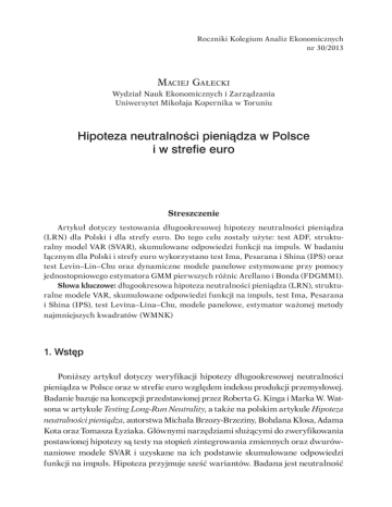 Poniższy artykuł dotyczy weryfikacji hipotezy długookresowej neutralności