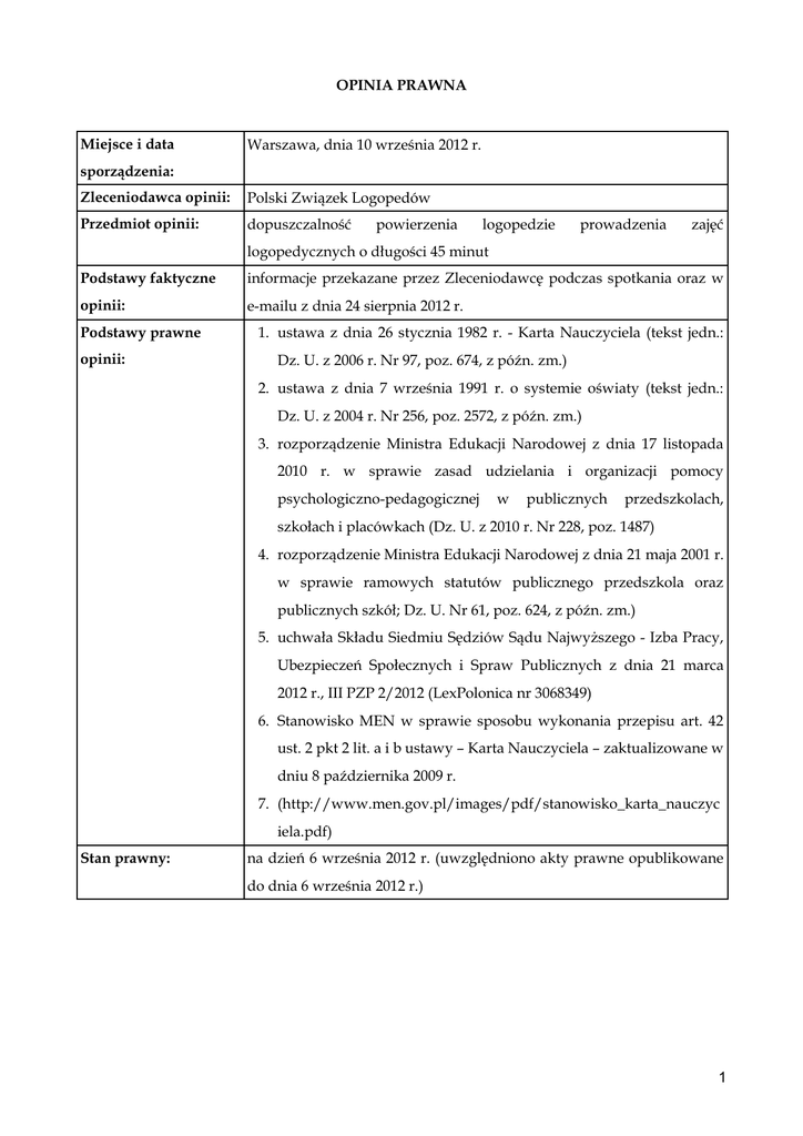 2012.09.10. opinia prawna dot czasu pracy logopedy