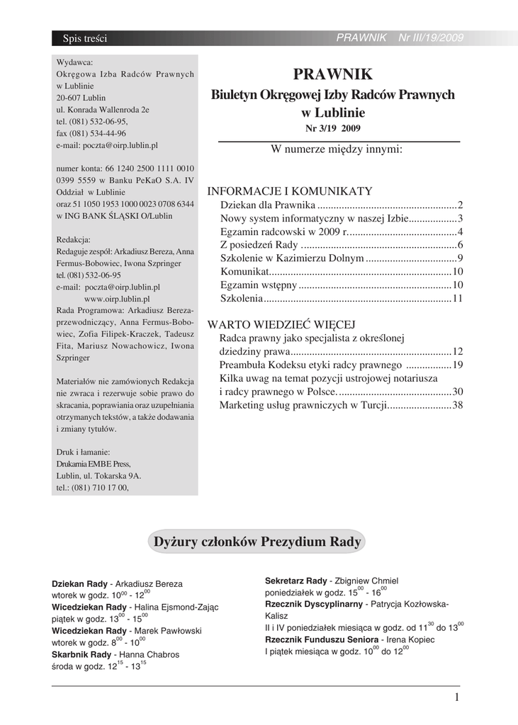 Nr 3/19 2009 - Okręgowa Izba Radców Prawnych w Lublinie
