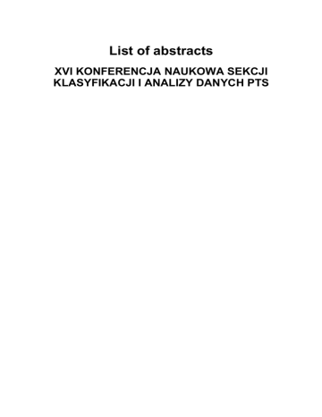 List of abstracts: XVI KONFERENCJA NAUKOWA SEKCJI KLASYFIKACJI