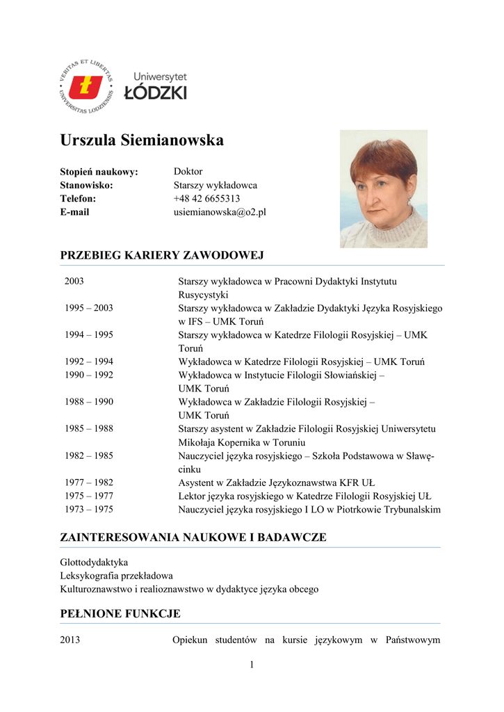 Urszula Siemianowska - Instytut Rusycystyki UŁ