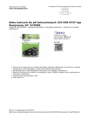 Geko Łańcuch do pił łańcuchowych 325 058 672T typ Husqvarna 18