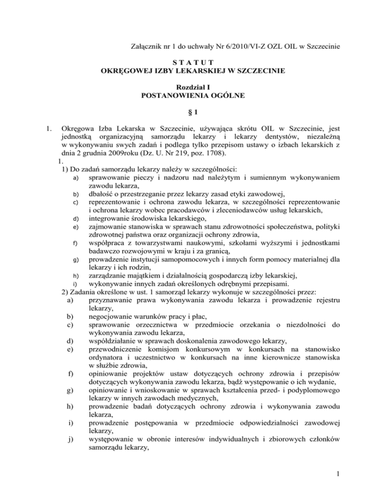 S T A T U T - Okręgowa Izba Lekarska w Szczecinie