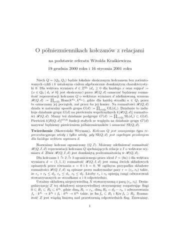 {x ∈ Q0 | dx 6= 0} jest skończony) przez R(Q, d) oznaczać będziemy rozmaitość reprezentacji