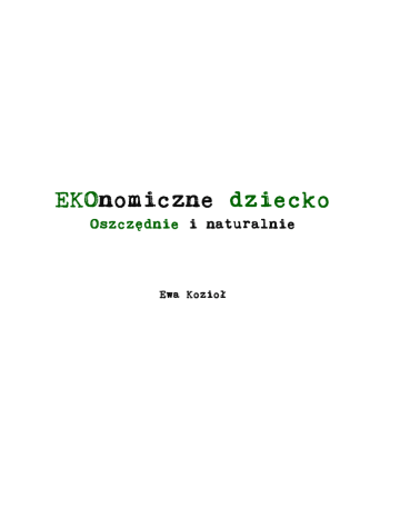 EKOnomic EKOnomicz nomiczne dziecko Oszczędnie i natu naturalnie Ewa Kozioł Copyright © 2013 by Dawid Kozioł Wydrukowane przez Dawid Kozioł, Wola Rzędzińska Projekt okładki Agnieszka Zych, 2013 Rysunek okładki Agnieszka Zych, 2013 Autor zdjęć Dawid Kozioł, 2013 ISBN: 978-83-938207-0-2 Podziękowania dla Justyny Sochy z fundacji STOPNOP. Warunki użytkowania Wszelkie prawa zastrzeżone. Rozpowszechnianie całości lub fragmentu w jakiejkolwiek postaci jest zabronione. Cała książka bądź też e-book, ani żaden ich fragment, nie może być przetrzymywana w jakimkolwiek systemie przechowywania plików, takim jak, na przykład www.chomikuj.pl czy www.mega.com. Kopiowanie, kserowanie, fotografowanie, nagrywanie, przesyłanie w formie elektronicznej, wypożyczanie, powielanie w jakiekolwiek formie bez wcześniejszej prośby o pozwolenie powoduje naruszenie praw autorskich. Ta książka posiada licencje jedynie dla Twojego prywatnego użytku. Dziękuję, za respektowanie ciężkiej pracy, jaką włożyłam w jej napisanie. Ta książka jest drukowana wyłącznie z użyciem materiałów recyklingowych oraz jest składana ręcznie, za wszelkie jej mankamenty bardzo przepraszam. 2 O autorce Ewa Kozioł jest założycielką popularnego bloga poruszającego temat domowej i budżetowej ekologii – www.ZielonyZagonek.pl. W 2010 roku z wyróżnieniem ukończyła John Moores University w Liverpoolu. Stojąc z dyplomem w ręku u drzwi wielkich korporacji, obróciła się na pięcie i odeszła. Za pieniądze nie da się kupić wolności, miłości, szczęścia i czasu, a tak naprawdę wystarczy niewiele. W życiu prywatnym wychowuje dwójkę dzieciaków i wraz z mężem prowadzi małe gospodarstwo „rolne”, w skład którego wchodzi kawałeczek ogródka, kury, króliki, kaczki i pies. Podejmuje świadome decyzje i robi to, co lubi. 3 Książce Ewy Kozioł EKOnomiczne dziecko: oszczędnie i naturalnie patronują: 4 Kwestie prawne Autor tej książki, Ewa Kozioł i wydawca, Dawid Kozioł, nie sugeruje stosowania jakiejkolwiek formy opieki medycznej, jednakże fakty, dane statystyczne i wiedza zawarta w poniższej publikacji powinna być dostępna dla każdej osoby, która chce poprawić swój lub czyjś stan zdrowia. Autorka starała się jak najdokładniej omówić każdy z poruszanych tematów, w sposób zapewniający precyzję i rzetelność informacji, która pochodzi z różnych źródeł nienależących do autorki. Arturka i wydawca, nie ponoszą odpowiedzialności za błędy, pominięcia lub jakiekolwiek nieścisłości. Wszelkie wyrażone lub domniemane opnie autorki, niekoniecznie korzystne na temat jakichkolwiek firm, organizacji, produktów, urządzeń, terapii czy czegokolwiek są niezamierzone. Książka nie ma na celu zastąpienia porad lekarza czy specjalisty, który zajmuje się leczeniem danych chorób. Wykorzystanie informacji zawartych w poniższym tekście jest wyłącznie w gestii czytelnika. Autor i wydawca, nie ponosi żadnej odpowiedzialności za ewentualne szkody wynikające z wykorzystania informacji zawartych w publikacji lub użytkowania tej publikacji. Wszystkie informacje są w tej książce zawarte wyłącznie w celu edukacyjnym i teoretycznym. Czytelnik zawsze powinien skonsultować z lekarzem wszystkie porady, zanim rozpocznie jakiekolwiek zmiany dietetyczne, odżywcze, kosmetyczne czy terapie ziołowe. Autor i wydawca nie zamierza w żaden sposób udzielać porad medycznych bądź też oferować ich substytutu. Czytelnicy powinni użyć własnego osądu albo skonsultować się z lekarzem lub specjalistą w sprawach konkretnego problemu. 5 Spis treści WSTĘP .............................................................................................. 10 1. MAMY DZIECKO W DOMU ........................................... 13 1.1. Sztuka karmienia piersią..............................................................14 1.2. Szczepić czy nie szczepić..............................................................46 1.3. „Rozpieszczamy” dziecko ............................................................62 1.4. Wózek .............................................................................................67 1.5. Łóżko – plac bojów .......................................................................73 2. 2.1. 3. SKÓRA DZIECKA ............................................................... 84 Dlaczego unikać komercyjnych kremów ...................................86 SKÓRA DZIECKA – PRZEPISY ...................................... 88 3.1. Naturalna oliwka dla dzieci .........................................................88 3.2. Krem na zimę .................................................................................89 3.3. Ochrona przed słońcem ................................................................91 3.4. Walczymy z insektami ..................................................................96 3.5. Szampon do włosów .....................................................................99 6 4. KĄPIEL ................................................................................... 101 5. IDĄ PIERWSZE ZĄBKI ................................................... 108 7. CIEMIENIUCHA ................................................................ 128 8. NATURALNE SPOSOBY NA ODPARZENIA......... 129 8. HIGIENA DZIECKA ......................................................... 132 9. DZIECKO CHORUJE ........................................................ 136 10. OTOCZENIE DZIECKA BEZ CHEMII ................... 146 10.1. Pieluszki jednorazowe ...............................................................147 10.2. Naturalna Higiena Niemowląt (NHN) .....................................148 10.3. Pieluszki wielorazowe ................................................................151 10.5. Jak odkazić materacyk po nocnej niespodziance?...................156 10.6. Podłoga może być miejscem zabaw ............................