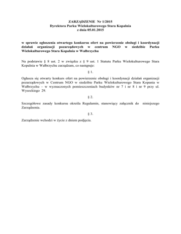 ZARZĄDZENIE Nr 1/2015 Dyrektora Parku
