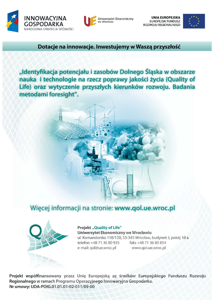 Prof. dr hab. inż. Jerzy Zwoździak 50-370 Wrocław Wybrzeże Wyspiańskiego 34/3 Ekspertyza możliwych scenariuszy rozwoju technologii w zakresie ochrony środowiska. 1. Przedmiot ekspertyzy Ekspertyza została oparta na wynikach raportu pt. IDENTYFIKACJA POTENCJAŁU I ZASOBÓW W OBSZARZE NAUKA I TECHNOLOGIE NA RZECZ POPRAWY JAKOŚCI ŻYCIA ORAZ WYTYCZENIE PRZYSZŁYCH KIERUNKÓW ROZWOJU. BADANIA METODAMI FORESIGHT, będącego pracą zbiorową pod redakcją Jerzego Hanuzy, Edmunda Cibisa, Tadeusza Miśkiewicza oraz Piotra Ziółkowskiego, obejmującą 380 stron tekstu łącznie z rysunkami, wykresami i pozycjami bibliograficznymi. Bezpośrednim przedmiotem ekspertyzy jest obszar badawczy ochrona środowiska, opracowanie pesymistycznego scenariusza rozwoju technologii. 2. Ogólne założenia raportu Celem opracowania raportu było wytyczenie kierunków rozwoju gospodarczego i infrastrukturalnego województwa dolnośląskiego służących podniesieniu jakości życia mieszkańców regionu. Przez podniesienie jakości życia rozumie się wzrost poczucia bezpieczeństwa wśród obywateli, możliwość korzystania z funkcjonalnej i łatwo dostępnej infrastruktury technicznej i społecznej, życie w czystym i zdrowym środowisku przyrodniczym. W przedsięwzięciu uwzględniono pola badawcze zdefiniowane w ramach Narodowego Programu Foresight „Polska 2020”, w szczególności ZRÓWNOWAŻONY ROZWÓJ POLSKI: „Zrównoważony rozwój regionów i obszarów” oraz BEZPIECZEŃSTWO. Ze względu na szeroki zakres tematyczny, realizacja projektu prowadzona była w trzech obszarach: Ochrona Środowiska, Bezpieczna Żywność i Biotechnologia i Farmaceutyka. Do głównych zadań poszczególnych paneli tematycznych 1 należała ocena potencjału naukowego oraz przegląd tematyk badawczych jednostek naukowych Dolnego Śląska, przygotowanie tez do badania eksperckiego Delhi, przeanalizowanie wyników badań prowadzonych metodami foresigh (metodą Delhi , metodą paneli eksperckich, analiza SWOT, analiza ograniczeń), wypracowanie kierunków rozwoju nauki i technologii oraz wskazanie priorytetowych działań związanych z poprawą jakości życia społeczeństwa dolnośląskiego. 3. Ocena sytuacji wyjściowej potencjału naukowo-technologicznego Dolny Śląsk stanowi prężny ośrodek naukowo-badawczy, w ramach którego prowadzone są prace w obszarze badawczym ochrona środowiska. Potencjał tkwi w wykwalifikowanych pracownikach i zapleczu badawczym istniejącym w wyższych uczelniach, jak Politechnika Wrocławska, Uniwersytet Przyrodniczy, Uniwersytet Ekonomiczny, a także wrocławskich oddziałach Instytutów Ochrony Środowiska oraz Meteorologii i Gospodarki Wodnej, oraz jednostkach Wrocławski, Uniwersytet Instytutu Technologiczno- Przyrodniczego z siedzibą główną w Falentach k. Warszawy. Badania związane z ochroną środowiska prowadzone są także we Wrocławskim Centrum Badań EIT+ i w Instytucie Niskich Temperatur i Badań Strukturalnych PAN. Należy jednak podkreślić, że w większości jednostek realizowane są badania podstawowe i stosowane, a mniejszym zakresie prace rozwojowe. Badania podstawowe, teoretyczne czy eksperymentalne, dotyczą głównie przyczyn zjawisk i zdarzeń i ich rezultaty niekoniecznie muszą znaleźć szybkie zastosowanie w praktyce. W przeciwieństwie, badania stosowane nastawione są na osiągnięcie założonych celów praktycznych. Do prac tych zaliczane są wszelkiego rodzaju diagnostyki stanu obecnego i prognozy (modelowanie), ekspertyzy, koncepcje i projekty. Z kolei prace rozwojowe związane są z opracowywaniem nowych lub ulepszeniem istniejących już wyrobów czy procesów bazując na obecnych osiągnięciach nauki. W ramach tych prac powstają prototypy oraz instalacje pilotowe. Prace rozwojowe rodzą niezwykle wartościowe kontakty pomiędzy badaczami w różnych gałęziach przemysłu i naukowcami akademickimi, które owocować mogą kolejnymi rozwiązaniami technologicznymi. Ponieważ opracowany ma być scenariusz technologiczny, toteż prace rozwojowe uznać należy za priorytetowe. Nie poważam badań akademickich, bowiem bez nich nie dokonałby się postęp w wielu dziedzinach, a dodatkowo praca naukowa stanowi doskonałą praktykę w rozwiązywaniu 2 problemów w ramach badań podstawowych, stosowanych i dalej innowacyjnych dla przemysłu. Z przedstawionego potencjału naukowego Dolnego Śląska w obszarze badawczym Ochrona Środowiska wynika że: 1. Zakłady czy Zespoły Badawcze w ramach Instytutów Wydziału Inżynierii Ochrony Środowiska Politechniki Wrocławskiej koncentrują się przede wszystkim w swoich pracach na badaniach stosowanych o bardzo szerokiej tematyce i tylko nieliczne zaangażowane są w prace rozwojowe. Niemniej jednak ich połączony potencjał naukowy jest zdolny do realizacji wszystkich kierunków badawczych w ramach priorytetu A (Poprawa gospodarki odpadami), Priorytet B (Gospodarka wodno-ściekowa); Priorytet C (Gospodarka odpadami niebezpiecznymi), Priorytet D (Ochrona atmosfery). 2. Niektóre jednostki organizacyjne Wydziału Chemicznego Politechniki Wrocławskiej prowadzą badania z zakresu technologii ochrony środowiska. Z punktu widzenia realizacji kierunków badawczych i wdrożenia technologii interesujące są badania nad oczyszczaniem odlotowych strumieni gazów i cieczy; zastosowaniem naturalnych i syntetycznych glinokrzemianów w ochronie powietrza i wód oraz nad zastosowaniem adsorbentów i katalizatorów do oczyszczania spalin silnikowych i energetycznych (Priorytet D – Ochrona Powietrza). Z kolei Instytut Technologii Nieorganicznej i Nawozów Mineralnych Wydziału Chemicznego zajmuje się m.in. zajmuje się m.in. odpadami powstającymi w procesach wytwarzania i stosowania nawozów organicznych (Priorytet A: Poprawa gospodarki odpadami, Teza 1.09). 3. W ramach Instytutu Chemii i Technologii Żywności Uniwersytetu Ekonomicznego prowadzone są badania z zakresu wykorzystaniu odpadów przemysłu rolno