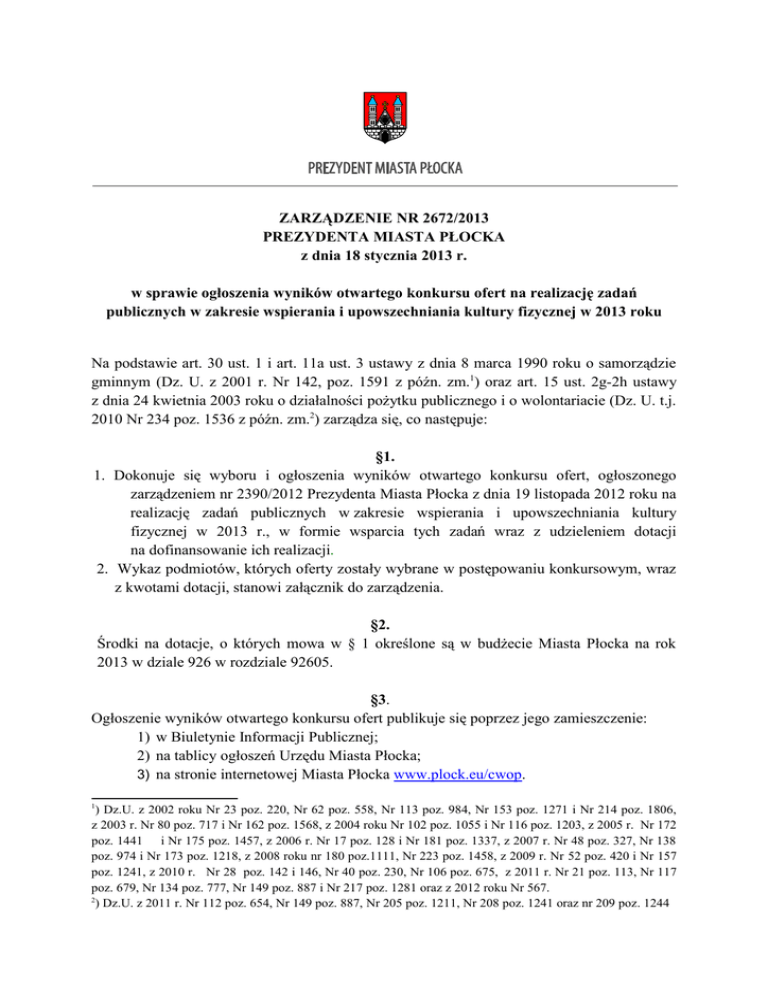 Zarządzenie Prezydenta Miasta Płocka Nr 2672/2013 z dnia 18