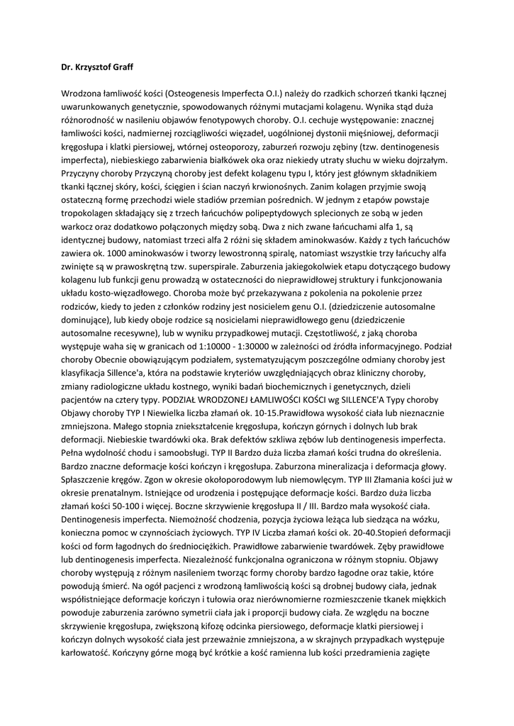 Dr. Krzysztof Graff Wrodzona łamliwość kości (Osteogenesis