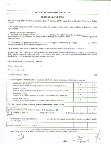 do Rady Gminy Debe Wielkie sporzqdzony dnia 17 lisropada 2014r. przez Grninnq Komisjg Wyborcz4 w Deb€m