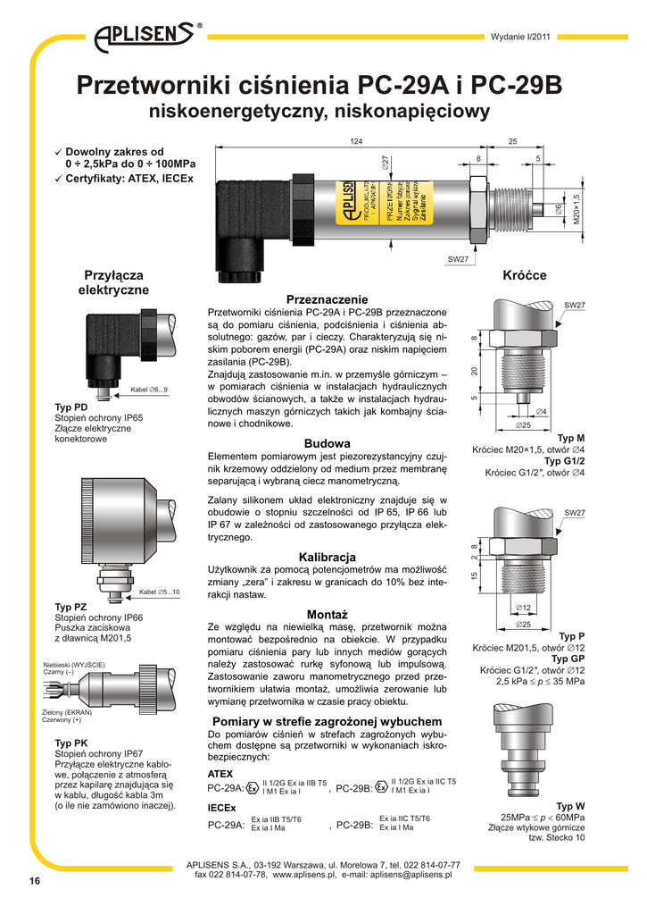 Przetworniki ciśnienia PC-29A i PC-29B