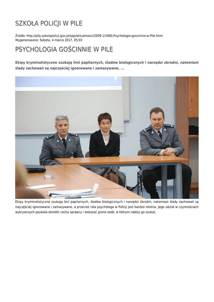 SZKOŁA POLICJI W PILE PSYCHOLOGIA GOŚCINNIE W PILE