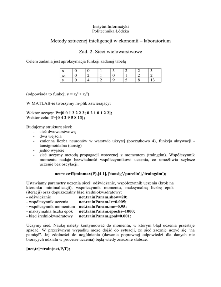 Zad. 2. Sieci wielowarstwowe