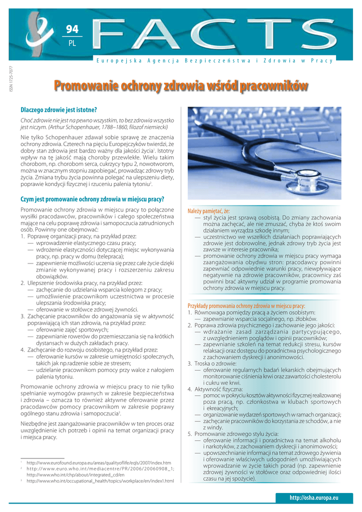 Promowanie ochrony zdrowia wśród pracowników - EU-OSHA
