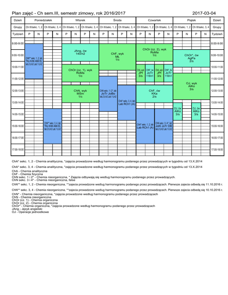 Plan zajęć - Ch sem.III, semestr zimowy, rok 2016/2017 2017-01-27