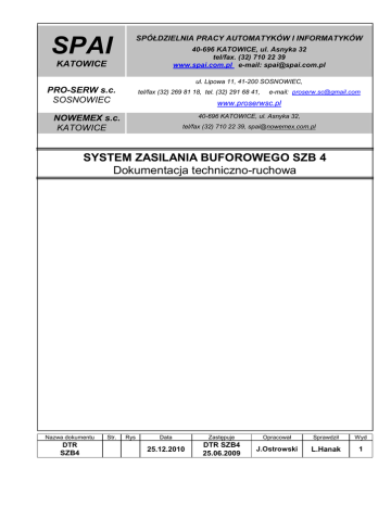 SYSTEM ZASILANIA BUFOROWEGO SZB 4 Dokumentacja