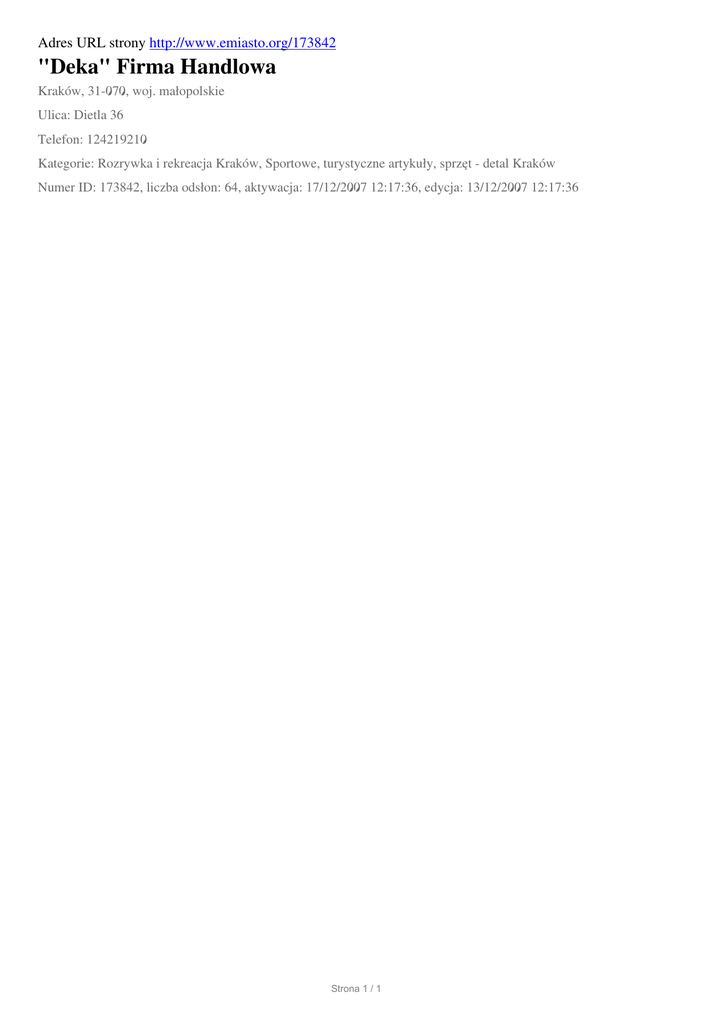 "Deka" Firma Handlowa, Krakow, Dietla 36