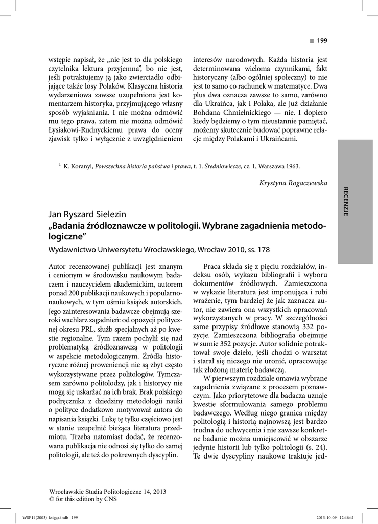 Jan Ryszard Sielezin „Badania źródłoznawcze w politologii