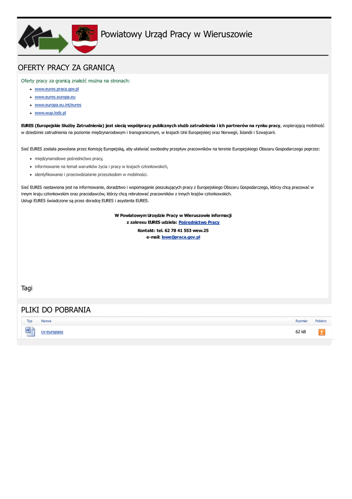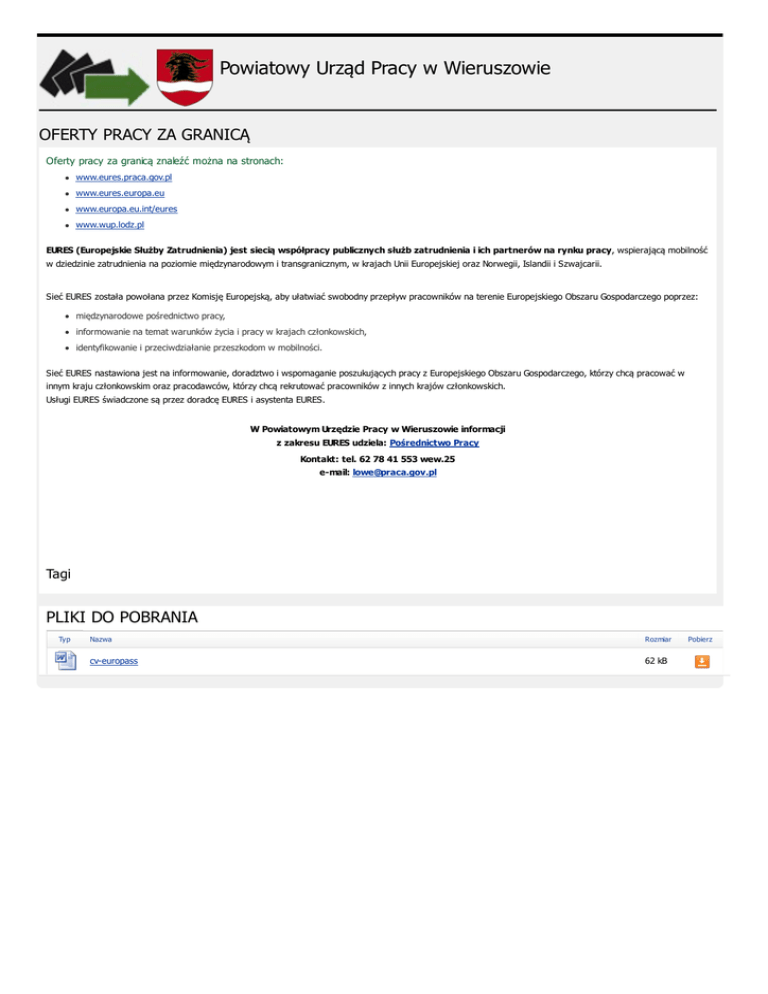 Oferty pracy za granicą - Powiatowy Urząd Pracy w Wieruszowie