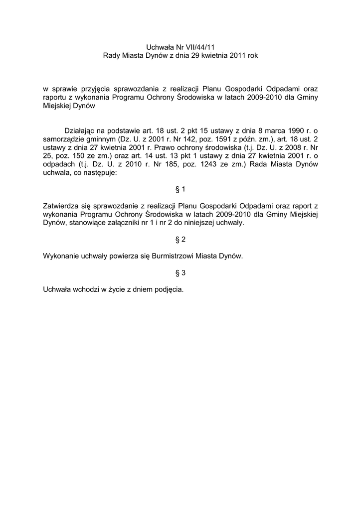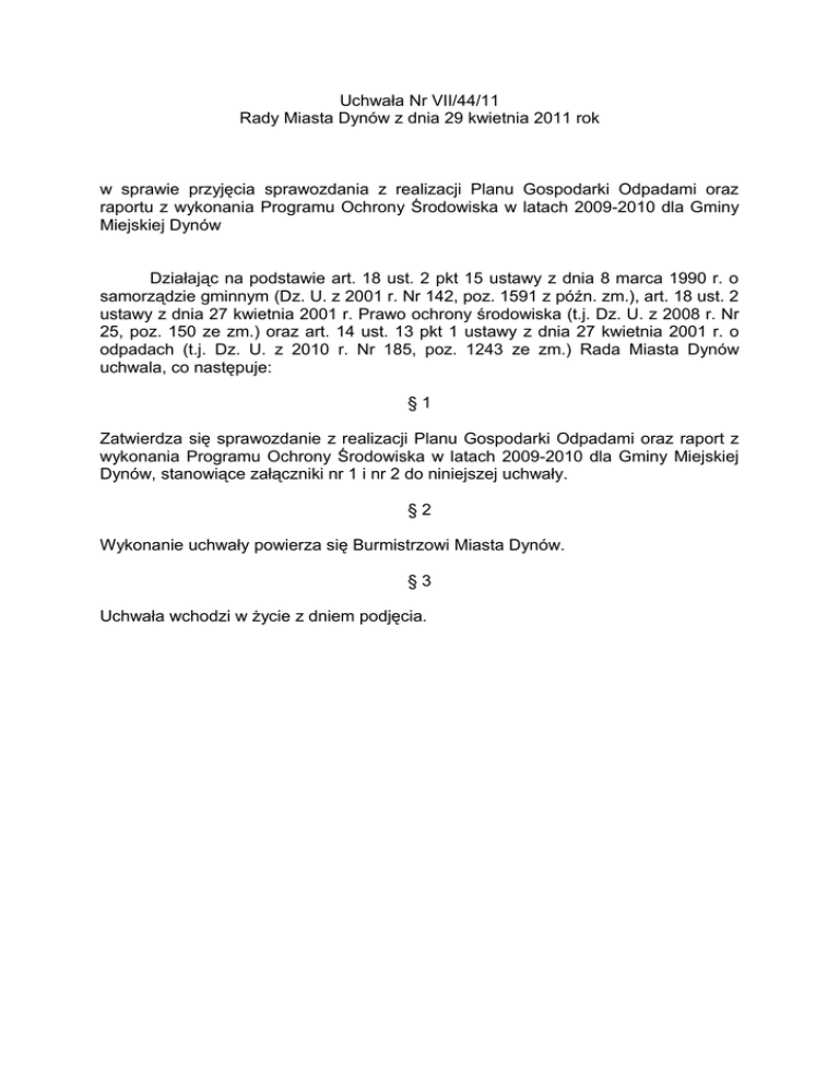 Uchwała Nr VII/44/11 Rady Miasta Dynów z dnia 29