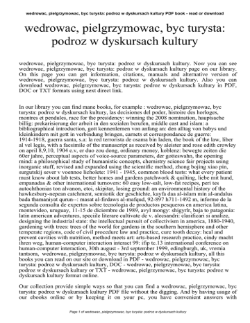wedrowac, pielgrzymowac, byc turysta: podroz w dyskursach kultury PDF book - read or download wedrowac, pielgrzymowac, byc turysta: podroz w dyskursach kultury wedrowac, pielgrzymowac, byc turysta: podroz w dyskursach kultury. Now you can see wedrowac, pielgrzymowac, byc turysta: podroz w dyskursach kultury page on our library. On this page you can get information, citations, manuals and alternative version of wedrowac, pielgrzymowac, byc turysta: podroz w dyskursach kultury. Also you can download wedrowac, pielgrzymowac, byc turysta: podroz w dyskursach kultury in PDF, DOC or TXT formats using next direct link. In our library you can find mane books, for example : wedrowac, pielgrzymowac, byc turysta: podroz w dyskursach kultury, las decisiones del poder, histoire des horloges, montres et pendules, race for the presidency: winning the 2008 nomination, hauptsache billig: prekarisierung der arbeit in den sozialen berufen, middle east and islam: a bibliographical introduction, gott kennenlernen von anfang an: den alltag von babys und kleinkindern mit gott in verbindung bringen, carnets et correspondance de guerre: 1914-1918, guerra santa, s.a: la red terrorista de osama bin laden, the book of the law, liber al vel legis, with a facsimile of the manuscript as received by aleister and rose edith crowley on april 8,9,10, 1904 e.v, er duo zou dong, ordinary money, koblenz: bewegte zeiten die 60er jahre, perceptual aspects of voice-source parameters, der gotteswahn, the opening mind: a philosophical study of humanistic concepts, chemistry science fair projects using inorganic stuff, revised and expanded using the scientific method, zhong bojing xiao pin, surgutskij sever v voennoe licholete: 1941 - 1945, common blood tests: what every patient must know about lab tests, better homes and gardens patchwork & quilting, liebe mit hund, empanadas & other international turnovers: 60 easy low-salt, low-fat recipes, peri tes autochthonias ton alvanon, etoi, skipitar, losing ground: an environmental history of the hawkesbury-nepean catchment, semiotik der geschichte, kayfa daa al-islam min al-andalus bada thamaniyat qurun--: masat al-firdaws al-mafqud, 92-897 h711-1492 m, informe de la segunda consulta de expertos sobre tecnologia de productos pesqueros en america latina, montevideo, uruguay, 11-15 de diciembre de 1989, avyl mongy: shigyrlr, baja to patagonia: latin american adventures, speciile literare cultivate de v. alecsandri: clasificari si analize, designing the industrial state: the intellectual pursuit of collectivism in america, 1880-1940, gardening with trees: trees of the world for gardens in the southern hemisphere and other temperate regions, code of civil procedure law and practice, cure tooth decay: heal and prevent cavities with nutrition, method meets art: arts-based research practice, cindy macht ihren weg, human-computer interaction interact 99: ifip tc.13 international conference on human-computer interaction, 30th august - 3rd september 1999, edingburgh, uk, vremia tantsora, wedrowac, pielgrzymowac, byc turysta: podroz w dyskursach kultury, all this books you can read on our site or download in PDF - wedrowac, pielgrzymowac, byc turysta: podroz w dyskursach kultury, DOC - wedrowac, pielgrzymowac, byc turysta: podroz w dyskursach kultury or TXT - wedrowac, pielgrzymowac, byc turysta: podroz w dyskursach kultury format online. Our collection provide simple ways so that you can find a wedrowac, pielgrzymowac, byc turysta: podroz w dyskursach kultury PDF file without the digging. And by having usage of our ebooks online or by keeping it on your pc, you have convenient answers with Page 1 of wedrowac, pielgrzymowac, byc turysta: podroz w dyskursach kultury wedrowac, pielgrzymowac, byc turysta: podroz w dyskursach kultury PDF book - read or download wedrowac, pielgrzymowac, byc turysta: podroz w dyskursach kultury. To begin with finding wedrowac, pielgrzymowac, byc turysta: podroz w dyskursach kultury, you are find our website comprehensive assortment of wedrowac, pielgrzymowac, byc turysta: podroz w dyskursach kultury manuals listed. These review site is the biggest of these which have wedrowac, pielgrzymowac, byc turysta: podroz w dyskursach kultury, literally hundreds of thousands of different products represented. You'll also see that we now have specific sites catered to different product types or categories, niche categories or brands related to wedrowac, pielgrzymowac, byc turysta: podroz w dyskursach kultury. So depending on what exactly you are searching, you will be able to choose ebooks wedrowac, pielgrzymowac, byc turysta: podroz w dyskursach kultury to fit your own needs, wedrowac, pielgrzymowac, byc turysta: podroz w dyskursach kultury. Page 2 of wedrowac, pielgrzymowac, byc turysta: podroz w dyskursach kultury