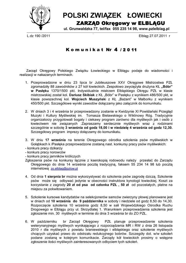 l POLSKI ZWIĄZEK ŁOWIECKI