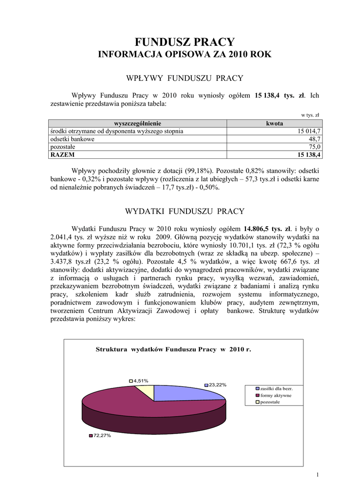 Informacja opisowa z wydatkowania środków Funduszu Pracy w