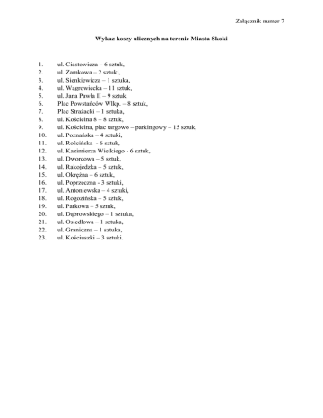 Załącznik numer 7 Wykaz koszy ulicznych na terenie Miasta Skoki 1