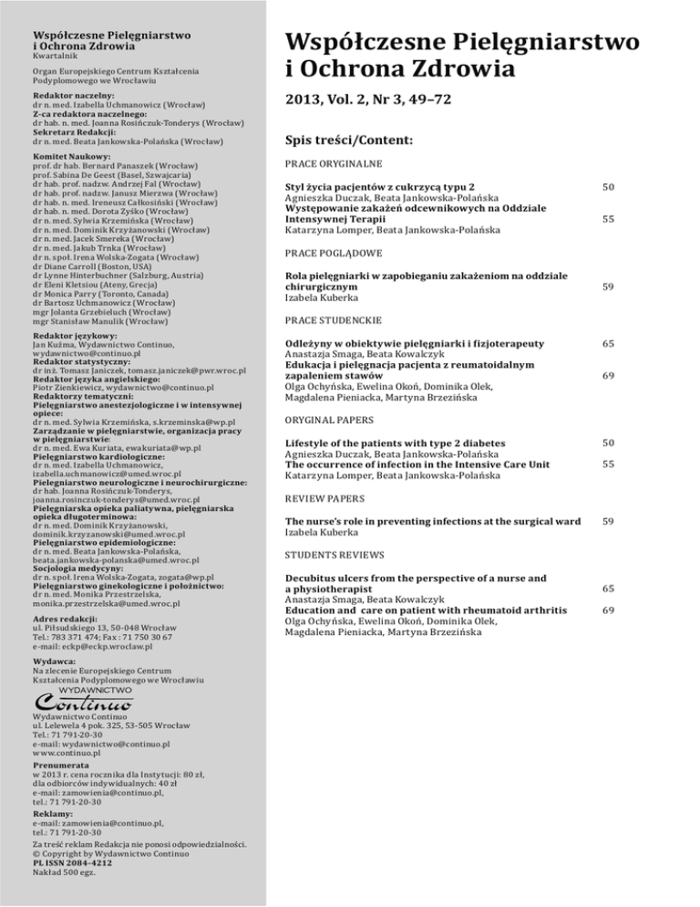 Pobierz - Współczesne Pielęgniarstwo i Ochrona Zdrowia
