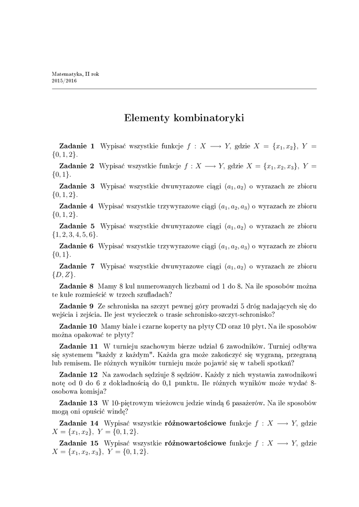 Zadanie 2 Wypisa¢ wszystkie funkcje f : X −→ Y, gdzie X = {x1 , x2 , x3 }, Y =