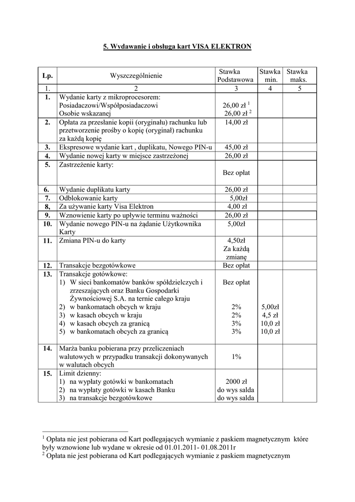 5. Wydawanie i obsługa kart VISA ELEKTRON Lp