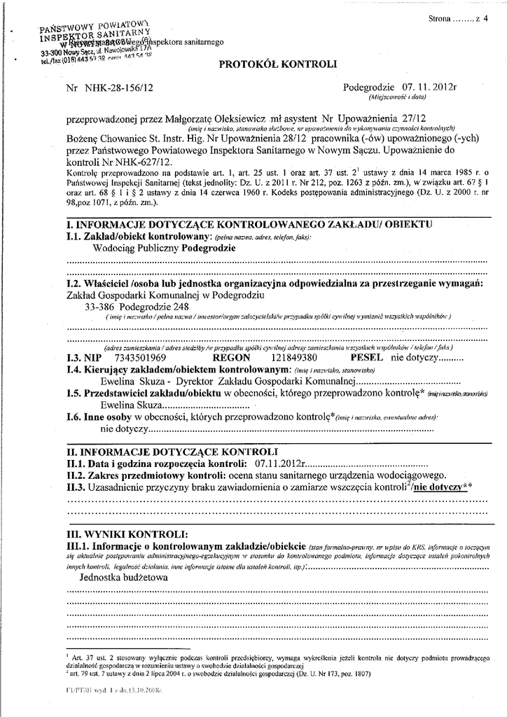 Protokól kontroli sanitarnej otrzymalem (-am) w dniu