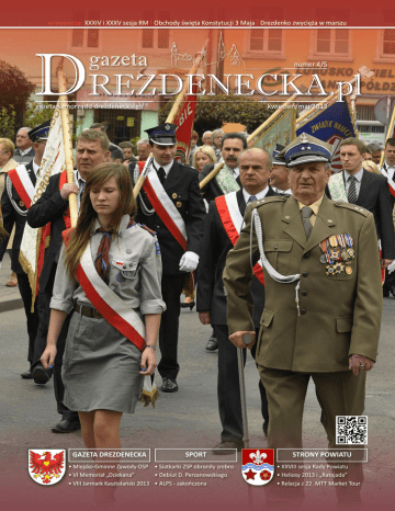 DREZDENECKA.pl w numerze: XXXIV i XXXV sesja RM I Obchody święta Konstytucji 3 Maja I Drezdenko zwycięża w marszu gazeta numer 4/5 gazeta samorządu drezdeneckiego GAZETA DREZDENECKA kwiecień/maj 2013 SPORT • Miejsko-Gminne Zawody OSP • Siatkarki ZSP obroniły srebro • VI Memoriał „Dziekana” • Debiut D. Perzanowskiego • VIII Jarmark Kasztelański 2013 • ALPS - zakończona STRONY POWIATU • XXVIII sesja Rady Powiatu • Heliosy 2013 i „Ratajada” • Relacja z 22. MTT Market Tour 2D REZDENECKA.pl | kwiecień/maj 2013 OBWIESZCZENIE DOTYCZĄCE OBOWIĄZKU MELDUNKOWEGO W związku z wejściem w życie w dniu 31 grudnia 2012 r. ustawa z dnia 7 grudnia 2012 r. o zmianie ustawy o ewidencji ludności i dowodach osobistych oraz niektórych innych ustaw (Dz. U. z 2012 r., poz. 1407) zmianie uległy zapisy ustawy z dnia 10 kwietnia 1974 r. o ewidencji ludności i dowodach osobistych (t. j. Dz. U. z 2006 r., Nr 139, poz. 993 ze zm.). Na mocy nowej ustawy wprowadzono zmiany dotyczące wykonania obowiązku meldunkowego: – Aby dokonać zameldowania na pobyt stały lub czasowy trwający ponad 3 miesiące, nie ma konieczności wymeldowania się w dotychczasowym miejscu pobytu stałego lub czasowego. Wymeldowanie to następuje automatycznie przy zameldowaniu w nowym miejscu. – Czynność zameldowania na pobyt stały i czasowy trwający ponad 3 miesiące można dokonać osobiście lub przez pełnomocnika legitymującego się pełnomocnictwem udzielonym na podstawie art. 33 § 2 Kodeksu postępowania administracyjnego na piśmie lub zgłoszonym do protokołu w urzędzie gminy właściwym ze względu na nowe miejsce pobytu osoby. Obowiązek zameldowania w miejscu pobytu stałego lub czasowego trwającego ponad 3 miesiące musi nastąpić najpóźniej w 30 dniu zmiany miejsca pobytu. Burmistrz Drezdenka Maciej Pietruszak WITAMY WAKACJE Stadion Miejski im . Józefa 28 Czerwiec 2013 Nojiego w Drezdenku - Gr y i zabawy dla dzie ci - Warsztaty tanecz ne - Strefa PlayStatio n - Zabawa taneczna - Muzyka '80'90-2 013 info: K. Wielgosz - 692 493 433 OFF ROAD ENDURO RALLY O PUCHAR NOTECI Zmagania miłoœni ków jazdy w tere nie. 28-30 Czerwiec 2013 Baza zlotu: Park Harcerza nad Not eci¹ Pojazdy 4x4 - Q uady - Motocykle Enduro info: J. Kuchowicz - 604 511 709 SEBASTIAN DUKACZEWSKI XXXIV sesja RM w Drezdenku Zapoznając się z porządkiem obrad XXXIV sesji RM w Drezdenku nie miałem wątpliwości, że najciekawszym, przyciągającym największą uwagę, wywołującym wiele emocji i prowadzącym, w efekcie końcowym, do wniosku, że nadzieja umiera ostatnia był punkt obrad związany z omówieniem harmonogramu budowy i modernizacji dróg wojewódzkich na lata 2014-2020 ze szczególnym uwzględnieniem obwodnicy Drezdenka. Na sesję został zaproszony dyrektor Zarządu Dróg Wojewódzkich w Zielonej Górze, Henryk Napierała. Można było snuć obawy, że dojdzie do sytuacji z XVII sesji RM z lutego 2012 roku, kiedy to zaproszony na sesję p. H. Napierała nie zaszczycił nas swoją obecnością i w swoim zastępstwie przysłał, delikatnie mówiąc, osobę niezbyt przygotowaną do tematu. Tym razem dyrektor ZDW stanął na wysokości zadania i sam opowiedział o planach modernizacji i budowy dróg wojewódzkich, jakie zostały podjęte przez Zarząd Województwa w formie stosownej uchwały w listopadzie 2012. Na samym początku zaznaczył, że jest to szkielet działań i należy spodziewać się corocznych aktualizacji, których powodem będzie budżet ZDW i wysokość unijnych dotacji. Budżet ZDW to kwota niewiele ponad 12 mln złotych a większość zadań jest realizowana przy wsparciu programów unijnych z 85 % dofinansowaniem. Na lata 2014-2019 zaplanowano wzmocnienie istniejącej SEBASTIAN DUKACZEWSKI XXXV sesja RM w Drezdenku W dniu 24 kwietnia 2013 roku o godzinie 15-tej w sali sesyjnej Urzędu Miejskiego w Drezdenku miała miejsce XXXV sesja Rady Miejskiej. Obrady sesji poprzedziło wspólne posiedzenie wszystkich komisji, gdzie szczegółowo dyskutowano między innymi nad projektami uchwał. Jako wiodący temat, zarówno komisji, jak i samej sesji, można wskazać nowe stawki taryf na zbiorowe zaopatrzenie w wodę i odprowadzenie ścieków na terenie Gminy Drezdenko. Należy zaznaczyć, że stawki taryf są przedstawiane Burmistrzowi do zatwierdzenia przez Zarząd Przedsiębiorstwa Gospodarki Komunalnej i Mieszkaniowej Sp. z o.o. w Drezdenku. Burmistrz ma za zadanie sprawdzić czy przedstawione taryfy są zgodne z przepisami ustawy o zbiorowym zaopatrzeniu w wodę i zbiorowym odprowadzaniu ścieków. Następnie, jeśli nie ma żadnych zastrzeżeń, zasadnym jest przedstawienie projektu uchwały radnym celem ich podjęcia. Burmistrz nie ma wpływu na wysokość taryf, a jego obowiązkiem jest zatwierdzenie taryf przedstawionych przez PGKiM w wypadku zgodności z ustawą. Rada Miejska w tym temacie też nie ma żadnych możliwości, tzn. nie ma DREZDENECKA.pl | kwiecień/maj 2013 jezdni na odcinku Drezdenko- Międzychód, której koszt przewidziany jest na kwotę 14,5 mln złotych a realizacja, ze względu na sporą długość odcinka, będzie przebiegała etapowo. Na lata 2015-2017 zaplanowana jest przebudowa drogi nr 174 na odcinku Drezdenko- Stare Bielice; koszt 6 mln złotych. Wzmocnienie drogi nr 157 w miejscowości Goszczanowo (do wysokości mostu na Noteci) zaplanowane jest na rok 2015, koszt 2 mln złotych. W roku 2017 zaplanowana jest przebudowa 3,5 km drogi 181 DrezdenkoWieleń; kwota 6 mln zł. Plan budowy obwodnicy Drezdenka został podzielony na IV etapy. Koszt całości to ponad 200 mln złotych. W planie na lata 2014-2020 zostały ujęte etapy I- III, których koszt opiewa na kwotę 88 mln złotych. IV etap najbardziej kosztowny (115 mln), który ma połączyć ze sobą dwie drogi wojewódzkie; od trasy nr 160, od Klesna do 158 Trzebicz został przesunięty w czasie i nie znalazł miejsca w okresie 2014-2020. W przyszłym roku ma się rozpocząć budowa I etapu. Jest t